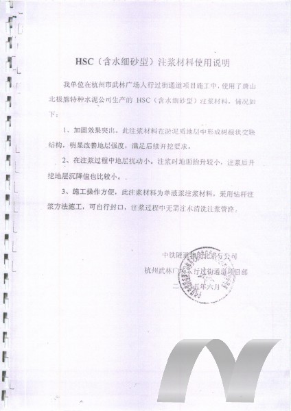 HSC含水細砂型注漿材料具有突出的可注性及一定的抗水性,適當的操作時間及硬化時間。